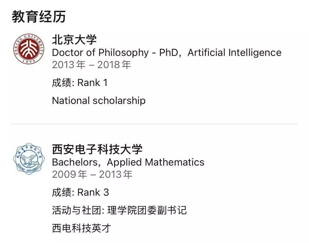 王云鹤出生于1991年,2013年本科毕业于西安电子科技大学应用数学专业,2018年博士毕业于北京大学人工智能方向。