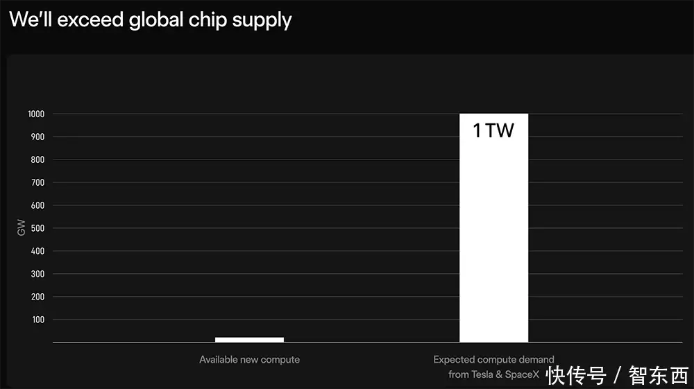 目前全球AI算力年产约为200亿瓦,即便把所有芯片工厂加起来,也只占TeraFab项目所需的2%左右。